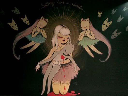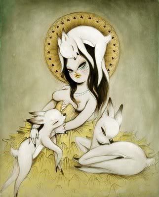 ILustración de la japonesa Junko Mizuno.De su obra gráfica con evidente contenido sensual, también me he encontrado con obras de extrema ternura que a punto de caer en la ironía manifiesta en ilustraciones sugerentes. Como si fueran una versión adulta de los cuentos de hadas con animalitos ingenuos y ansiosos, sus poupées conquistan en un ambiente sutil la mirada del espectador, por sobre lo explícito de su propuesta. Miss Van lleva su pintura al límite del encanto, antes de sumirse en la vulgaridad y me encataría alguna vez encontrar sus muñecas rondando nuestro país.